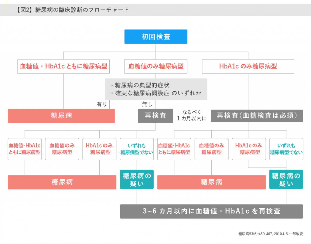 再び「糖尿病型」が確認されれば糖尿病と診断する.ただし,HbA1c のみの反復検査で糖尿病と