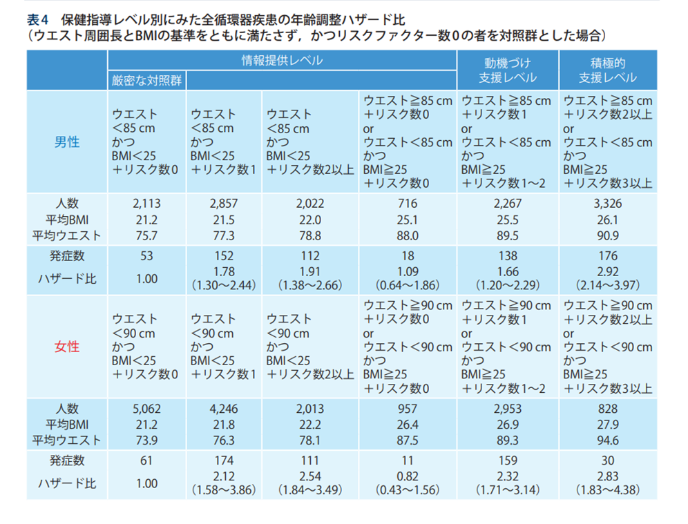 上表のとおり、内臓脂肪型肥満だけではリスク因子とはならない