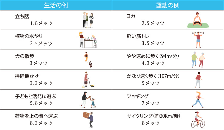 1週間に23エクササイズ以上の運動を目指す(エクササイズ=METS×時間)