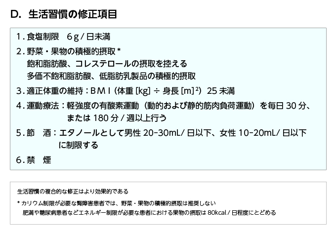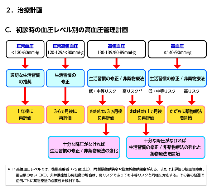 - 血圧 診察室血圧 130/80 mmHg(家庭血圧 125/75 mmHg)未満