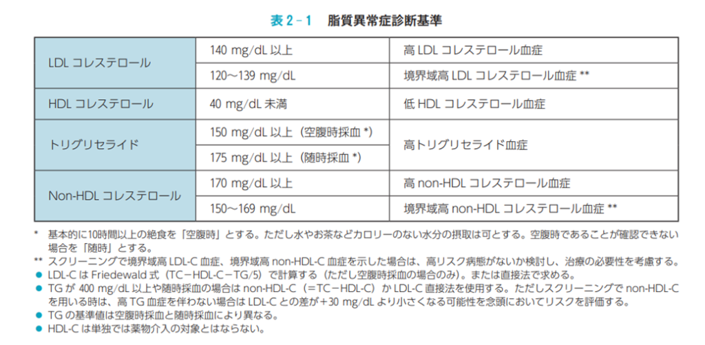 - 中性脂肪高値 150mg/dL(1.7mmoL/L)以上