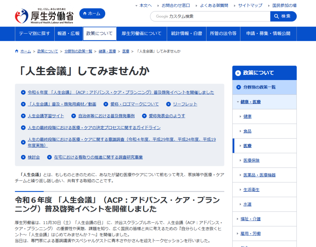 人生会議は厚労省が積極的に推進している取組です